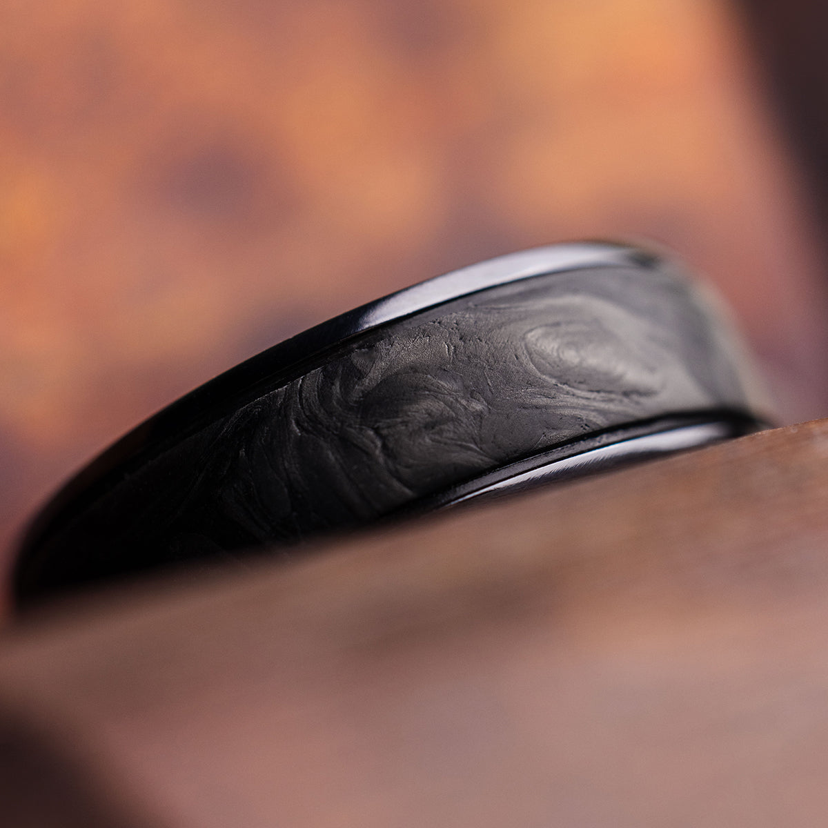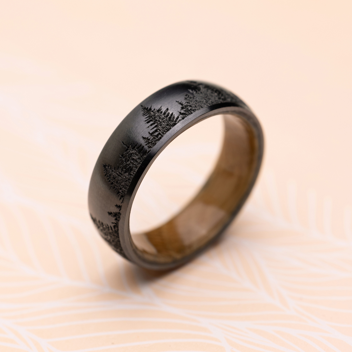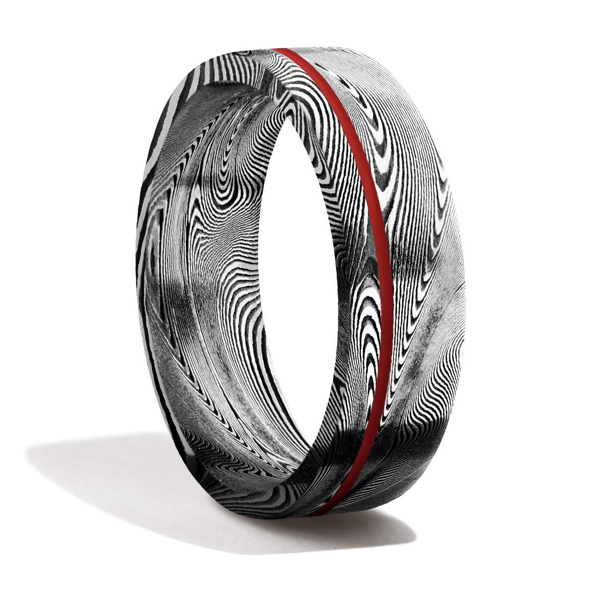We make each Damascus ring by hand by folding two steel materials together. This process creates vivid patterns and means that no two rings are exactly alike.
