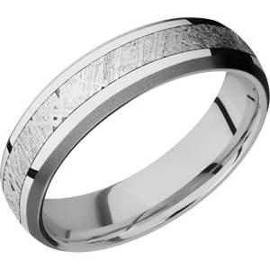 6 mm wide/Domed Bevel/14K White Gold band with one 3 mm Centered inlay of Meteorite.