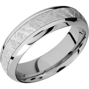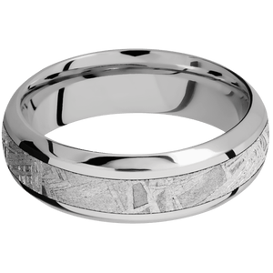7 mm wide/Domed Bevel/18K White Gold band with one 4 mm Centered inlay of Meteorite.